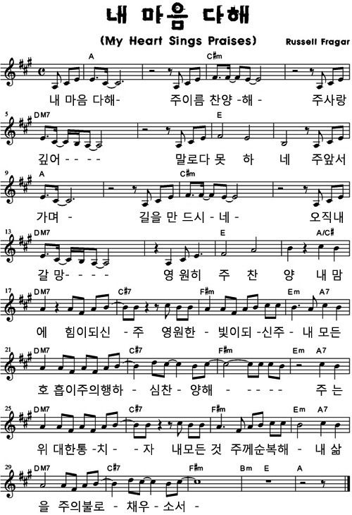 A코드 빠른 찬양 악보_하늘 위에 주님 밖에